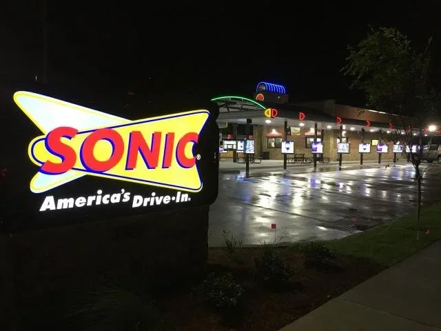 Sonic’s identity centers on drive-in ordering — you park in a stall and order through an intercom, and food is brought to your car.
